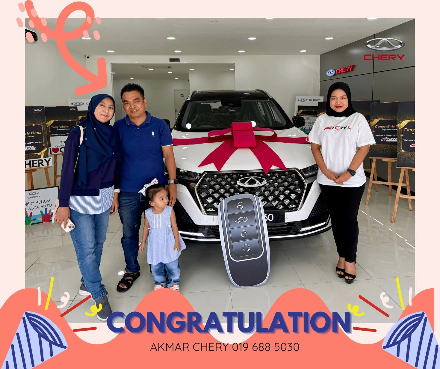 Hai! nama saya NURUL AKMAR, Sales Consultant yang sah dan berdaftar di Chery Malaysia. Berpengalaman lebih 7 tahun dalam bidang jualan kereta di Malaysia.